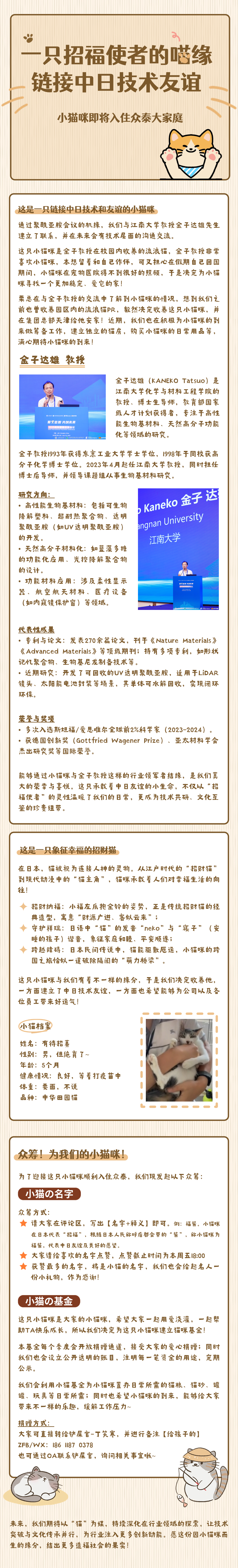 這只小貓咪是金子教授在校園內(nèi)收養(yǎng)的流浪貓